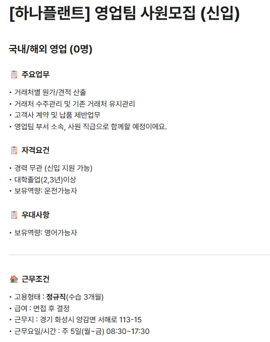 fnctId=bbs,fnctNo=1253 [하나플랜트] 영업팀 사원 모집(신입) 작성일 2025.10.28 작성자 최지은 조회수 537 **학과 졸업생이 많은 기업입니다. 관심 있는 학생은 연락주세요! 첨부파일 첨부파일이(가) 없습니다.